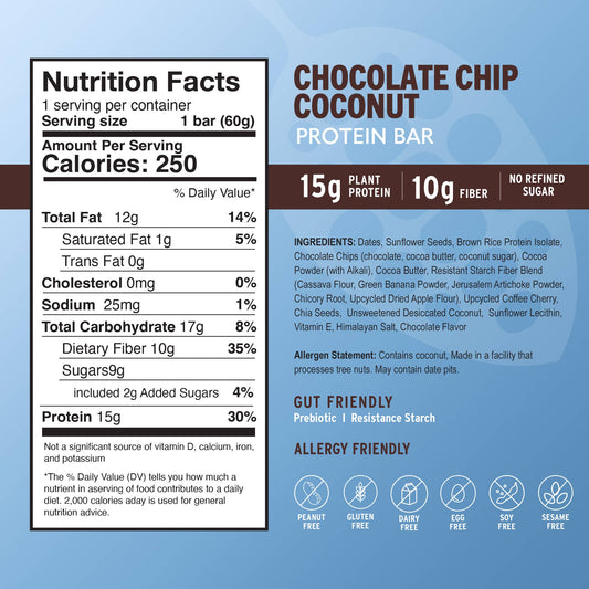 Amrita Health Foods - Chocolate Chip Coconut Protein Bars, High Fiber, Vegan