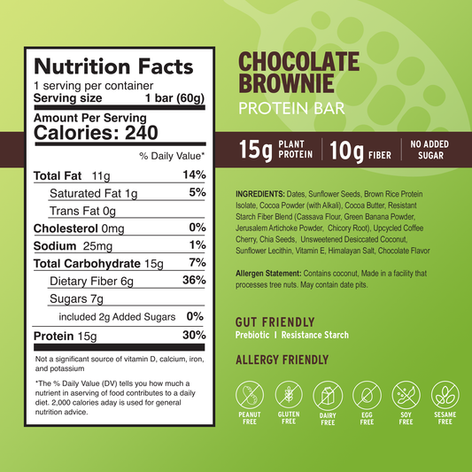 Amrita Health Foods - Chocolate Brownie Protein Bars, High Fiber, No Added Sugar