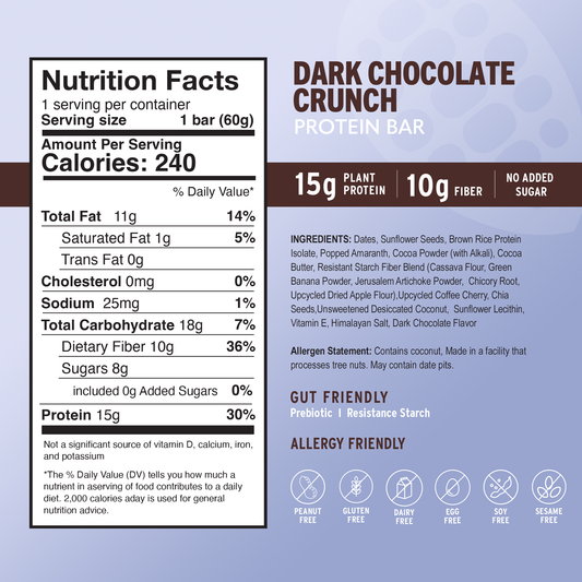 Amrita Health Foods - Dark Chocolate Crunch Protein Bars, High Fiber, No Sugar Add