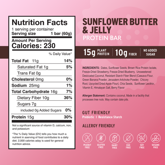 Amrita Health Foods - Sunflower Butter & Jelly High Protein Bars, High Fiber, GF