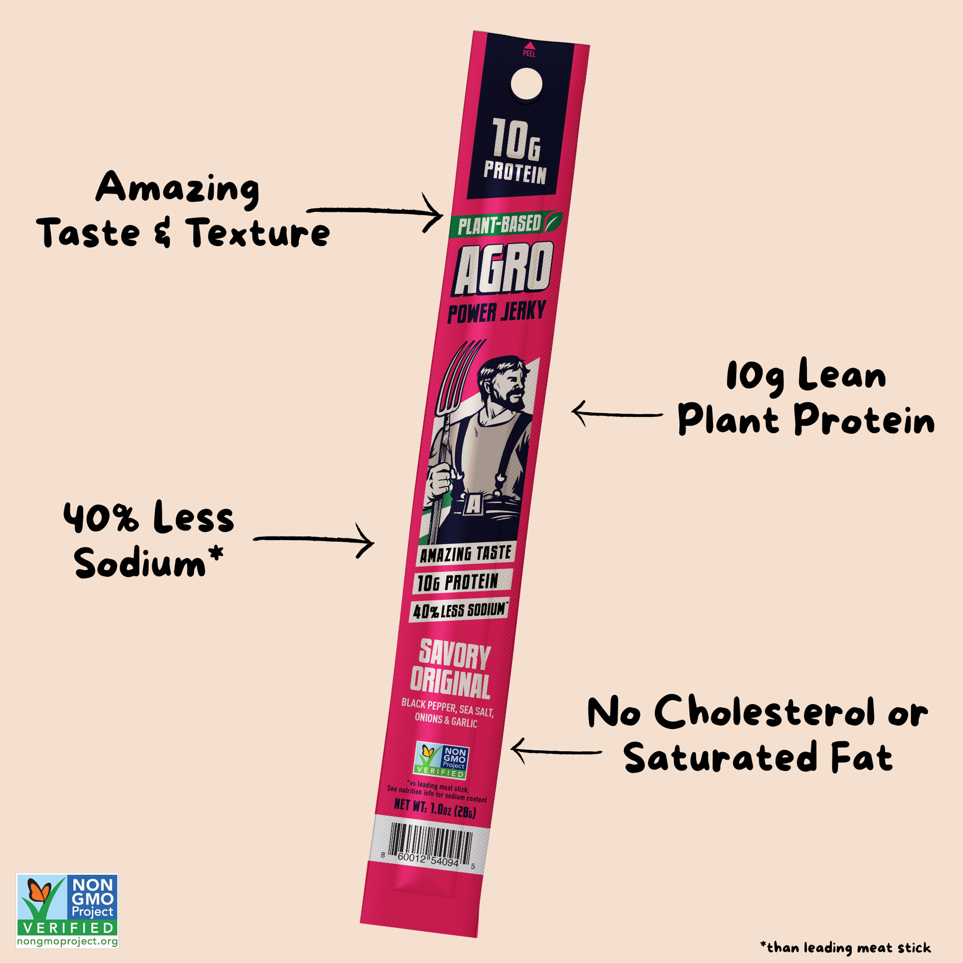AGRO POWER Jerky - AGRO POWER Sticks Caddy - Vegan- Savory Original (16 x 1oz)