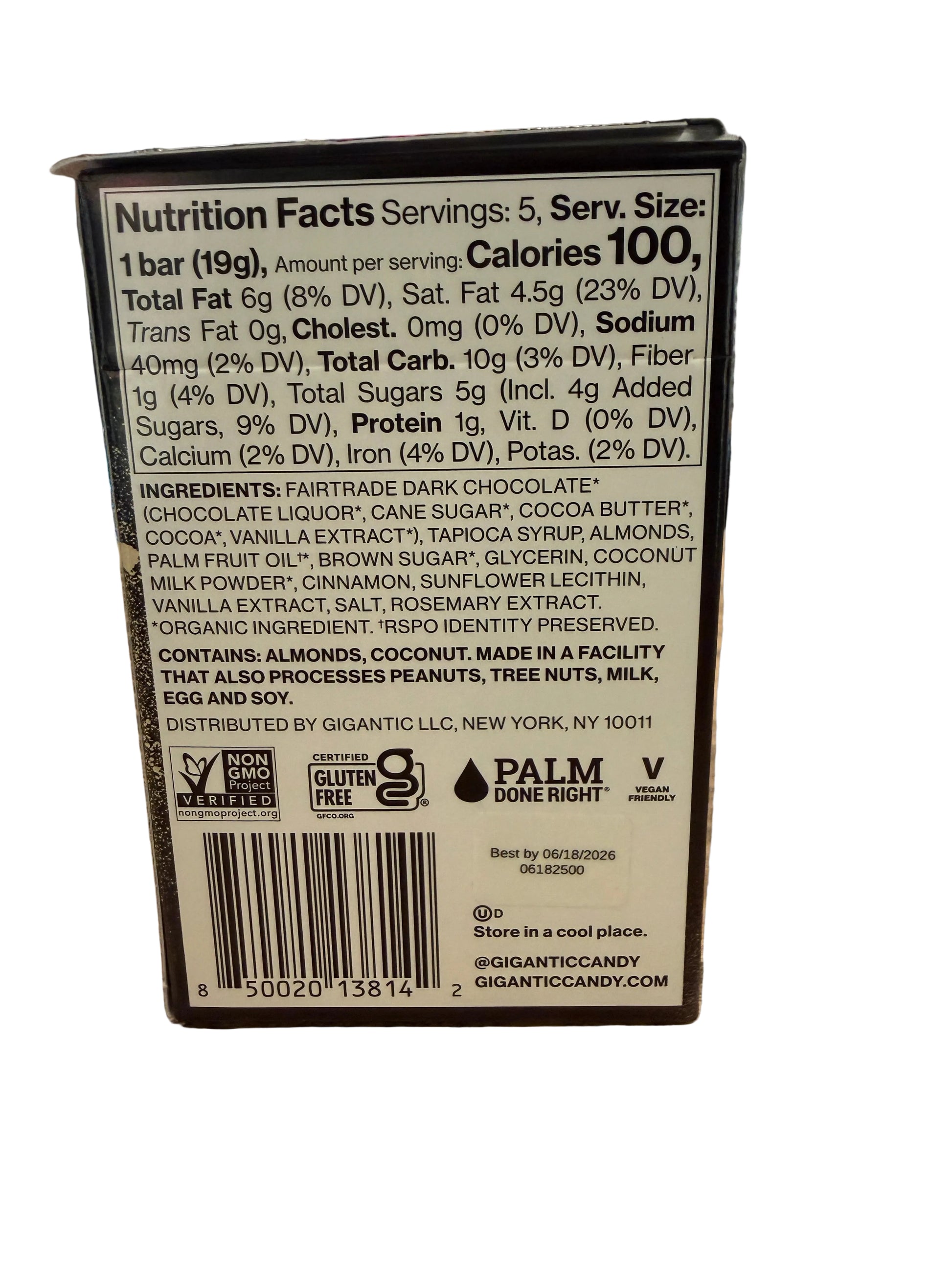 Almond Horchata is toasty almonds, gooey caramel, a daring dash of cinnamon, and deeply delish dark chocolate. Kinda like an iced horchata on a summer day. Every Gigantic flavor is 100% plant based, with 2/3 less sugar than old-school candy bars, and no alternative sweeteners. Please note: Gigantic is a brand name, we're super yum but not supersize!