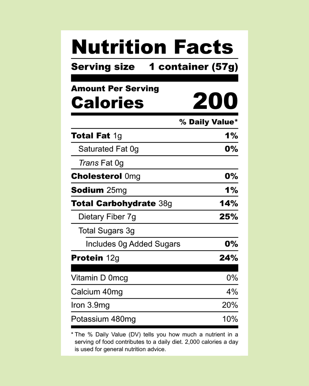 Introducing Low Sodium Cilantro Lime Chile, the no salt added and less spicy version of our fan favorite Mexican Green Chile! With just 25mg of sodium, this version lets you control the salt and heat level of this classic Mexican-inspired lentils meal. Perfect for plant-based tacos or just devoured straight from the cup!