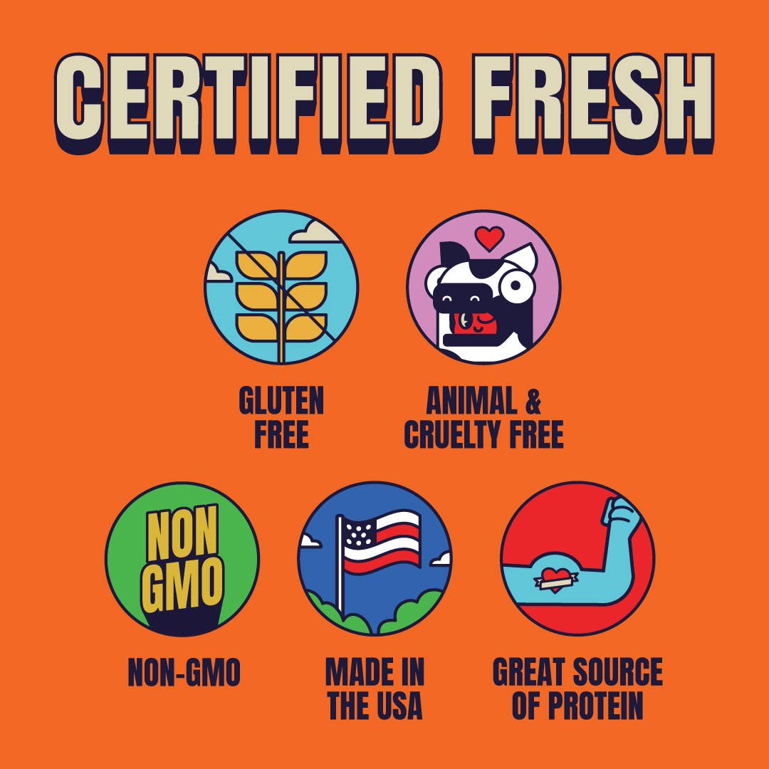 🍗 Plant-Based | Smooth + Buttery Flavor | High-Protein Inspired by our love for everything buffalo, we created this flavor as a small batch exclusively sold on our online web store. Customers began blowing up our inbox begging to make this buttery wing-inspired jerky available everywhere. Hardcore fans have been known to dunk this in vegan ranch! - Gluten-free & non-GMO - Cholesterol-free - 90 Calories/ 6 grams of protein per serving - 20 Calories/ 16 grams of protein per bag - Certified Gluten Free, Non-GMO Verified, Certified Vegan, Made in the USA. Perfect for travel snacks, back to school, and anyone looking for a satisfying, high-protein, plant-based snack!