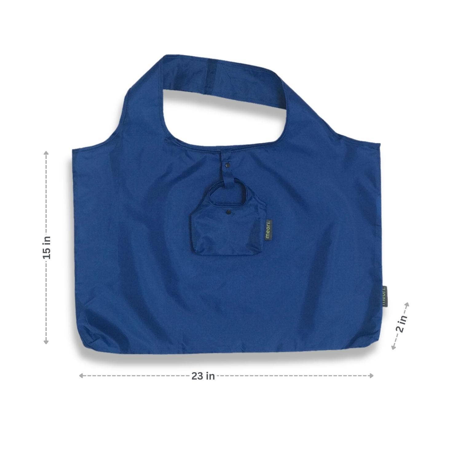 The meori Pocket Shopper is XLarge and Xtra Strong holding up to 30lbs! Holds at least 2 grocery bags full. Folds neatly into the attached pocket to be stashed away in your purse or car without taking up any space. Choose from fashionable colors and prints.