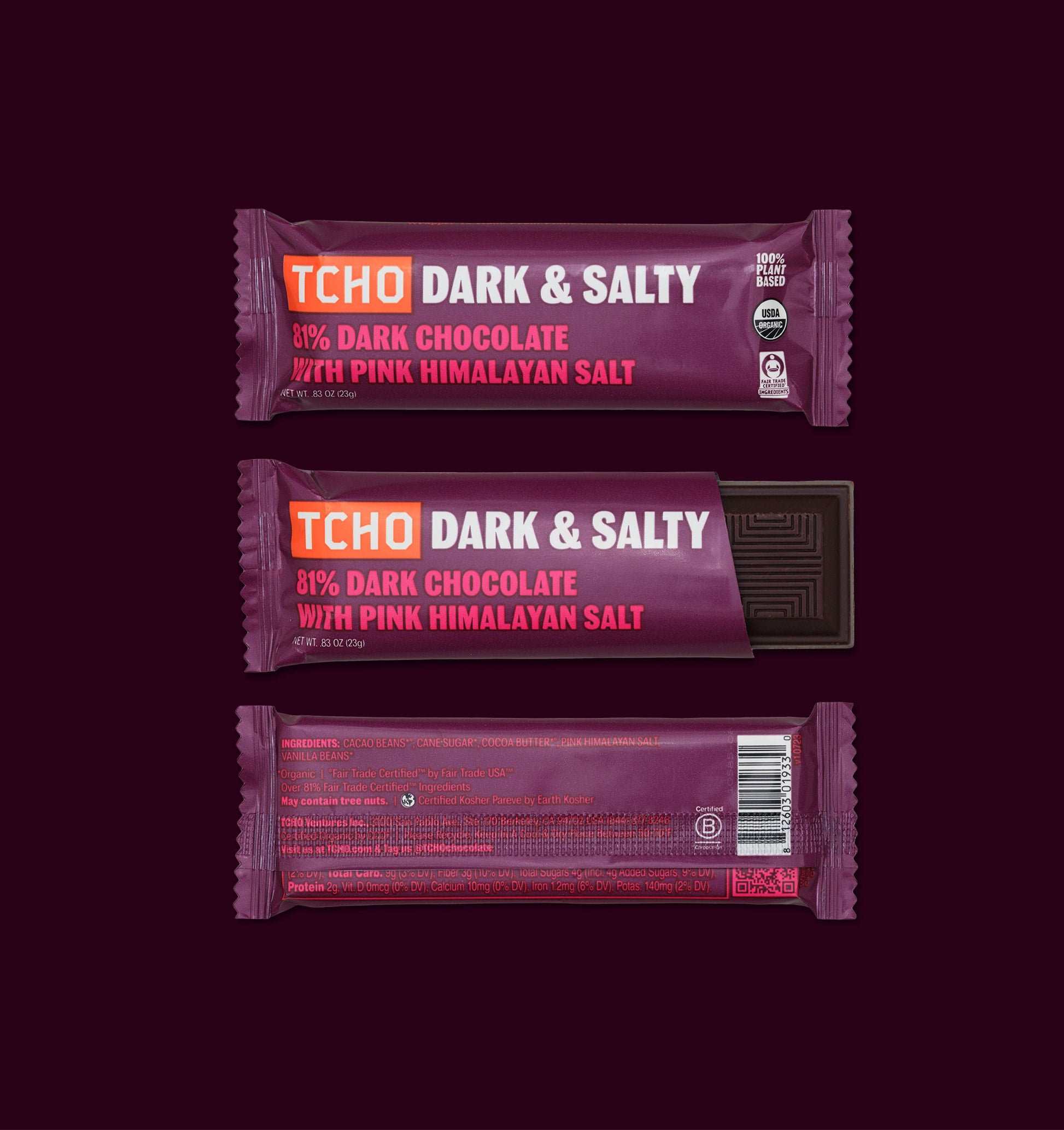 A beautifully blended 81% dark chocolate with fudgy cake notes highlighted by bright pink Himalayan salt. Worldly chocolate made with cacao from five origins. Now available in our new 23g Singles size! Perfect for the office, the pantry, goodie bags, and more.