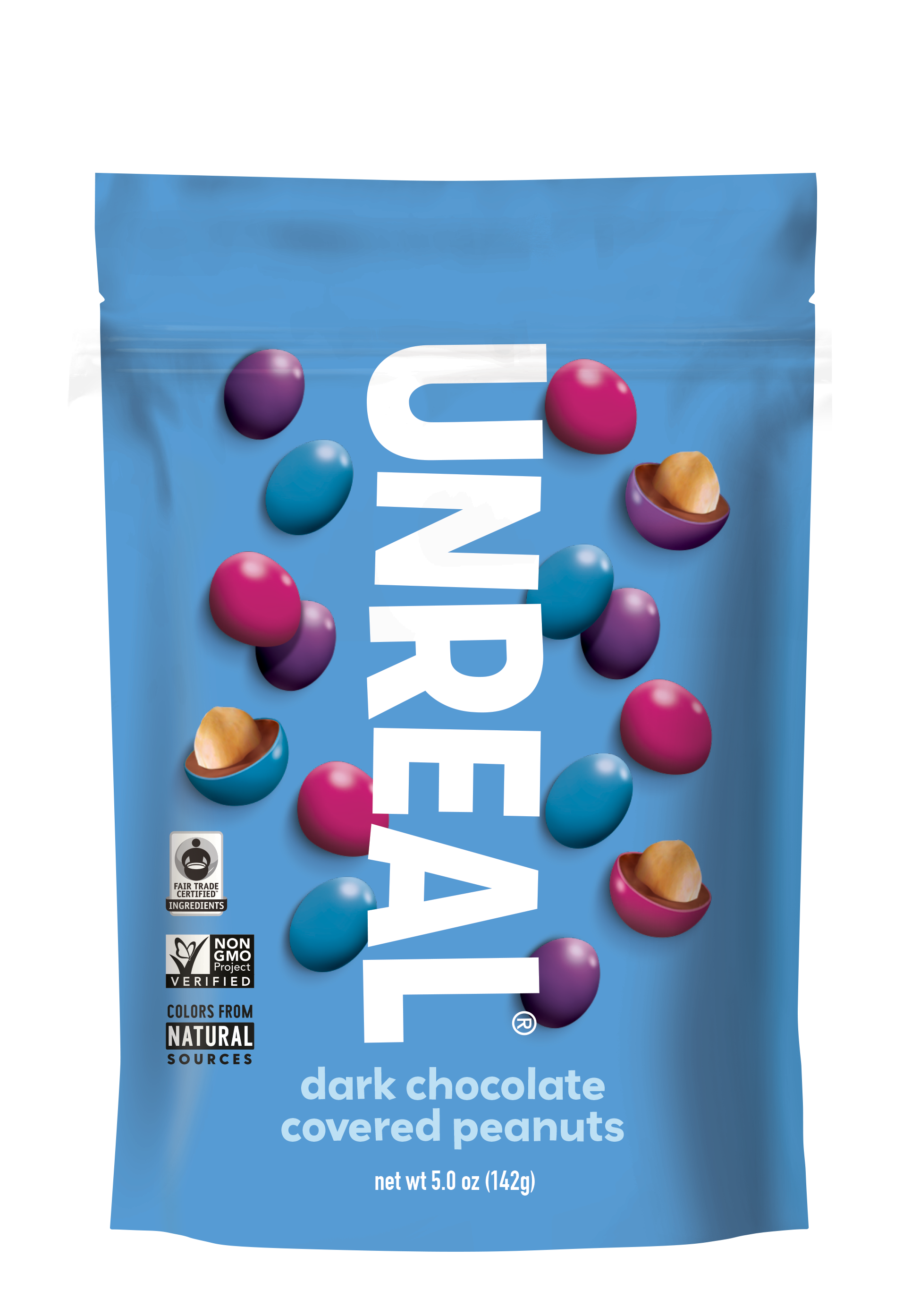 UNREAL is on a mission to build a world where you don't have to be afraid of your food, starting with your favorite indulgent snacks. * ALL-NATURAL: our dark chocolate covered peanuts are non-gmo project verified, do not contain soy ingredients and are made in small batches with fair trade certified ingredients. * COLORED BY NATURE: we only use colors from all-natural veggies such as spirulina and beets, and we never use titanium dioxide as a processing agent, as many similar products do. * VEGAN: our dark chocolate covered peanuts are certified vegan. * MADE FOR SHARING: These 6 re-sealable bags each contain 5oz of dark chocolate covered peanuts.